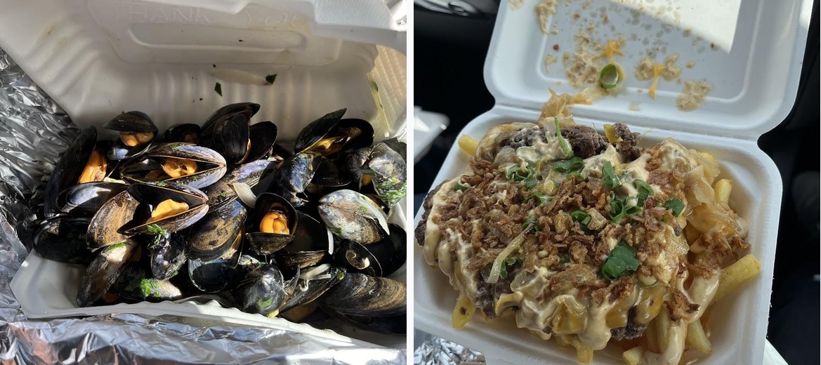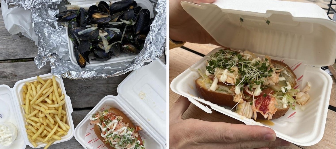 We had the “hot lobster catch” roll and mussels with some fries to share. Both were delicious. Excellent portion sizes with a generous amount of lobster in the roll. Outdoor seating only and we were here on a cool September afternoon but the food came quickly so all good!